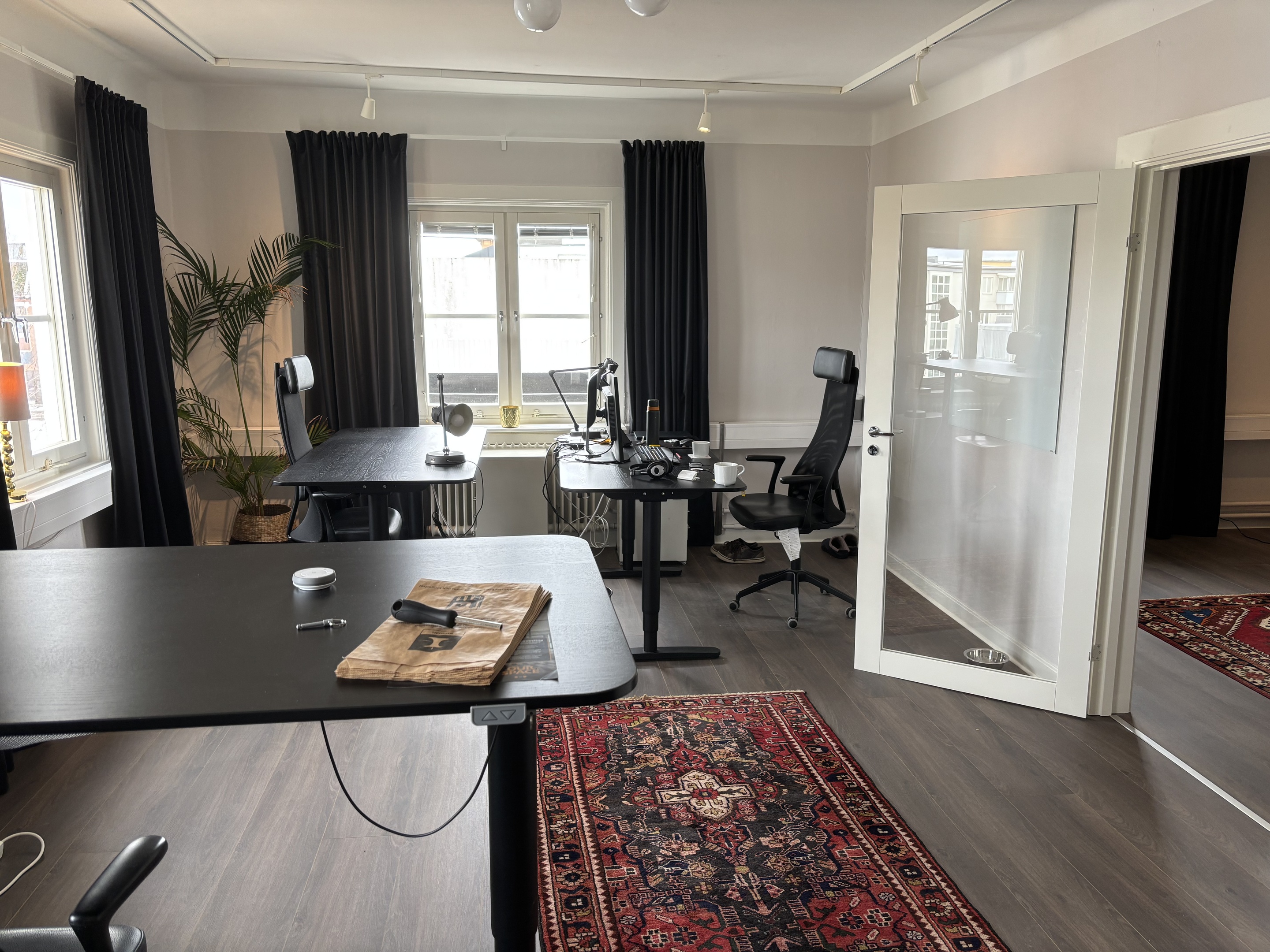 Vi har också ett par mindre kontor, knappt 20 m2, för enmansföretaget.